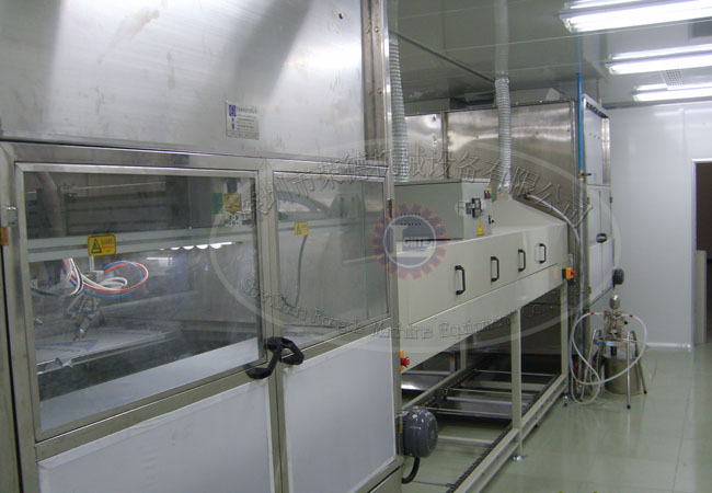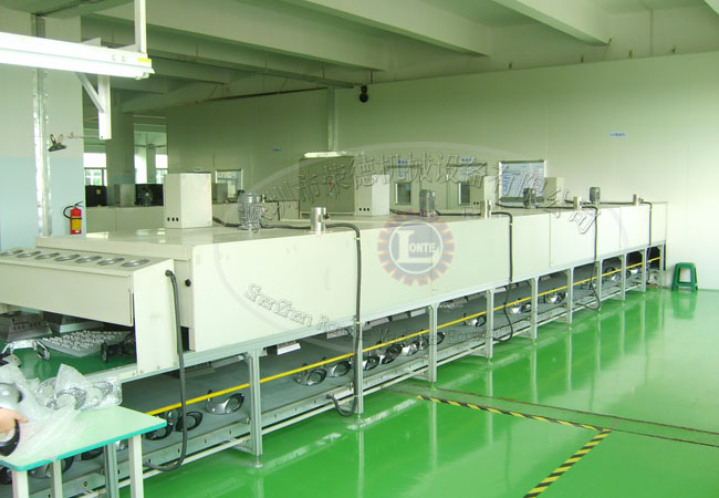 噴漆烘干流水線技術優勢:該裝置反射鏡采用聚光型冷鏡,燈下加裝石英玻璃板,可有效降低被照物表面溫度;變頻無級調速,保證傳送平穩;觸摸屏微電腦自動控制,實現人機對話;每套UV系統獨立控制,依生產開啟燈管數量;每支燈設累計工作計時器,方便掌握燈管工作時間和老化程度;透明視窗,工作時可以觀察固化燈工作情況,并設開門保護裝置;燈管及燈罩可以上下調整。